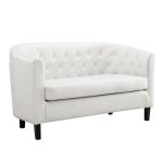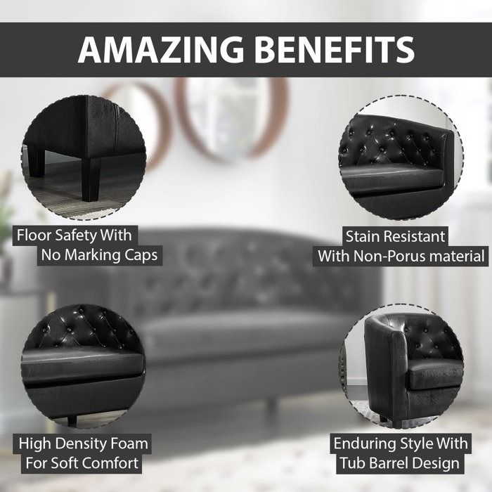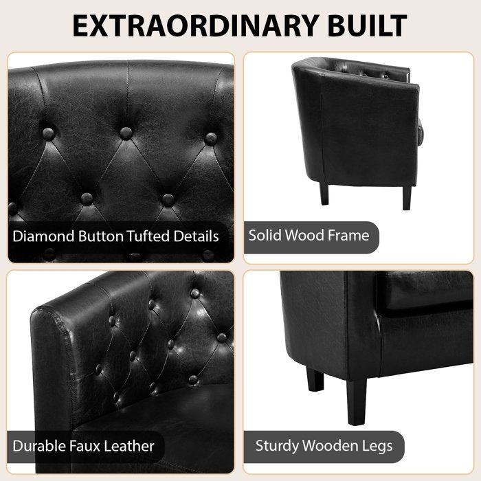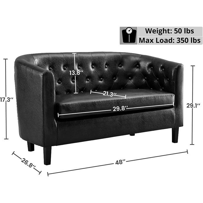 Featuring eye-catching diamond quilt detailing, premium button-tufted faux leather finish, wooden legs, detailed stitching, and a tub barrel design, this comfy loveseat creates a soft and elegant look. It will uplift any decor effortlessly and create a stunning piece of furniture in your room.