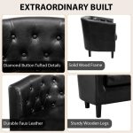 Accent any room in your house with the button tufting with its signature diamond button creating a soft, relaxed style look. It features cushioned seating wrapped in luxurious, tufted faux leather with elegant diamond button detail stitching Armrests, and form-fitted seating adds extra comfort while sturdy wooden legs ensure strength and stability.