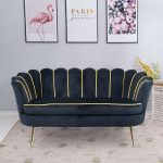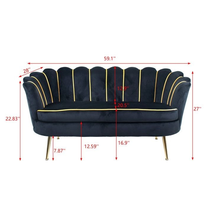 – Featuring soft velvet fabric for durability, this flared arm loveseat is built on a wooden frame of sturdy faux wood