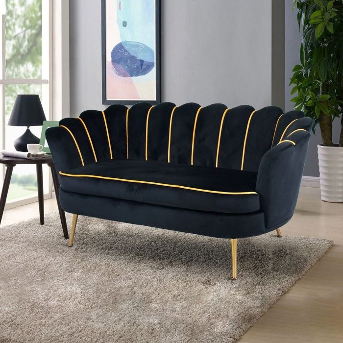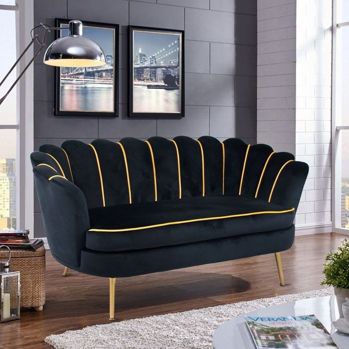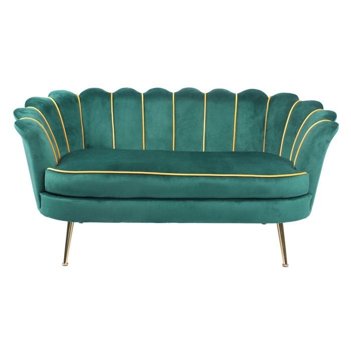 This loveseat combines a scalloped back with flared arms to bring chic style to your living room.