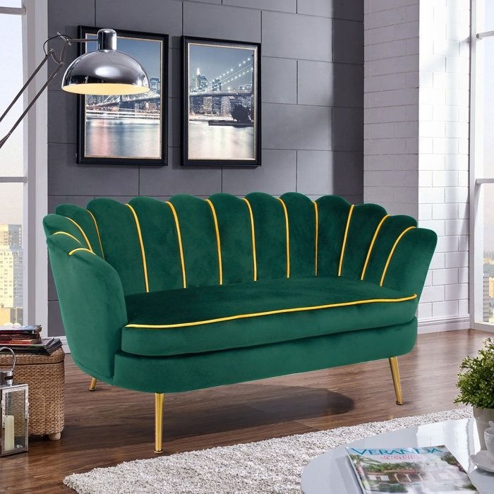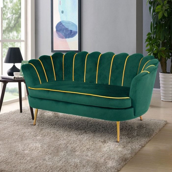 Decorotika Flared Arm Velvet Loveseat – Green, Gold