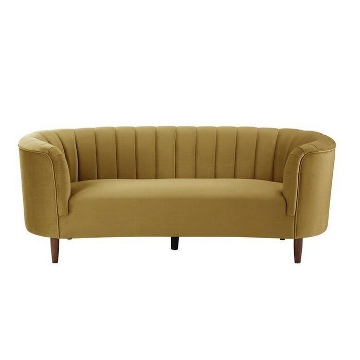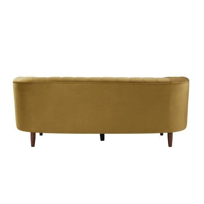 Wrapped in velvet fabric with plush vertical channel tufting that creates a streamlined effect and visual depth to any living area.