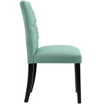 Striking an updated parsons silhouette, this dapper dining chair features an armless L-shaped seat. Deep button tufting lends a tailored touch, while 3″ of foam cushioning provides comfort and support