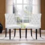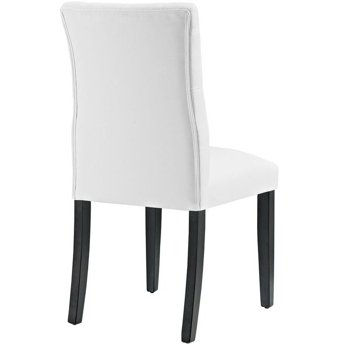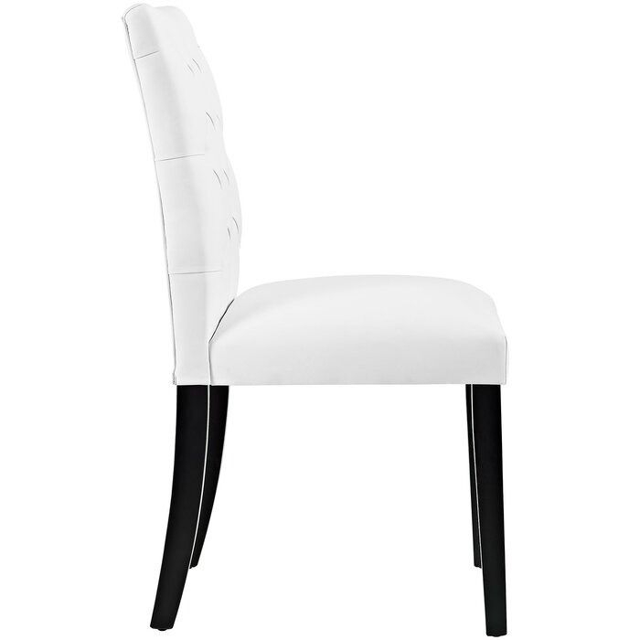Striking an updated parsons silhouette, this dapper dining chair features an armless L-shaped seat. Deep button tufting lends a tailored touch, while 3″ of foam cushioning provides comfort and support