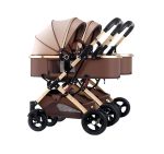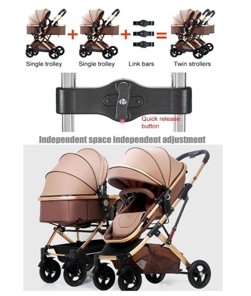 Vintage alongside dual stroller with wear-resistant premium quality golden aluminium alloy and also a big burgundy cover.