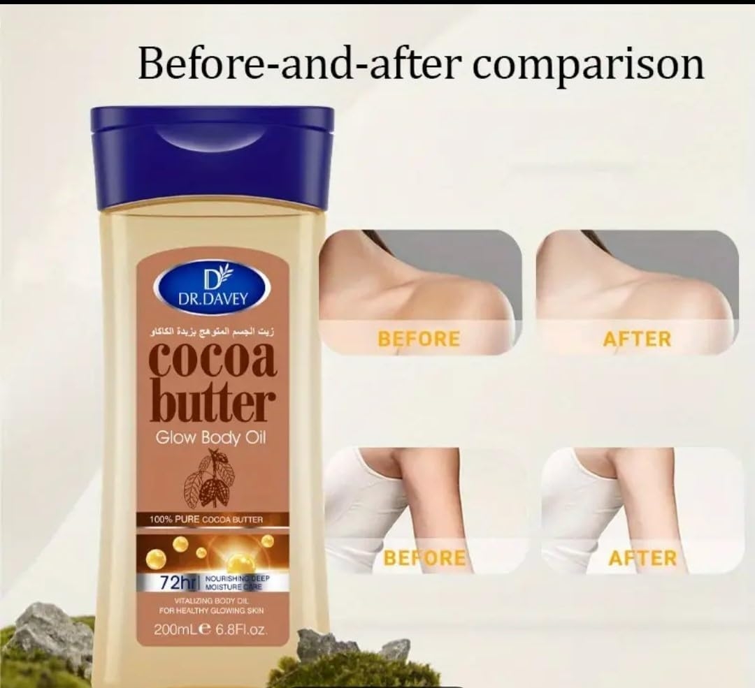 Dr. Davey Cocoa Radiant Body Gel Oil with pure cocoa butter and replenishing oils for healthy glowing skin This vitalizing body oil from Intensive Care locks in moisture to help revitalise dry and dull-looking skin This body oil absorbs quickly and heals dry skin for glowing radiance with non-greasy, rich moisturisation Directions: Apply generously to clean, dry skin and massage in.Warnings: Avoid contact with eyes. If contact does occur, rinse well with clean water