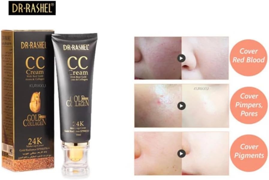 50ml Benefits : To lighten skin color, real gold atoms, brightens the color of the skin on the spot, to show shiny youthful and healthy skin. Restore youth. The effectiveness of collagen for anti-aging, firming the skin, and restore skin youth. Improve skin. Cover lines and improve the natural melanin in the skin, covering blemishes and spots and large pores, acne, skin seems so soft. Protection from the sun. The reform of the skin sun protection from UV rays. Natural concealer. Hide the water and residual oils from the skin and improve dark skin. 24K make-up cover gold radiance SPF60/PA++ Use For : Face, Neck Natural Concealer SPF 60/PA++ Feature : Anti-Aging – Nourishing – Lightening – SPF 60/PA++ – Natural Concealer – Firming – Pores – Acne – Sun Protection Skin Type : Suitable for all skin types Ingredients : Aqua, glycerin, ethylhexyl palmitate, titanium doxide, catyl peg/ppg-10/1 dimethicone, cydopentasioxare, sodium chicride, cyclohexasilaxane, cocos nuciara (coconut) oil, trehalose, oligopeptide-29, hydrogenated lecithin, sodium oleate, glycine soja (soybean oil, disodium edta, phenoxyethanol, glycosaminoglycans, hydrolyzed, collagen, fragrance, ci 77492, ci 77491, ci 77499 How To Use : After cleansing the skin and apply a small amount on the face and neck, massage gently until complete absorption, this product works like a natural concealer or it can be mixed with your foundation to create a more natural look.
