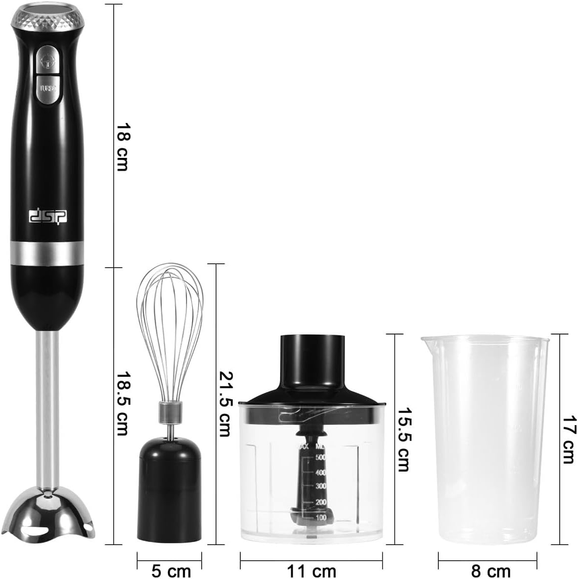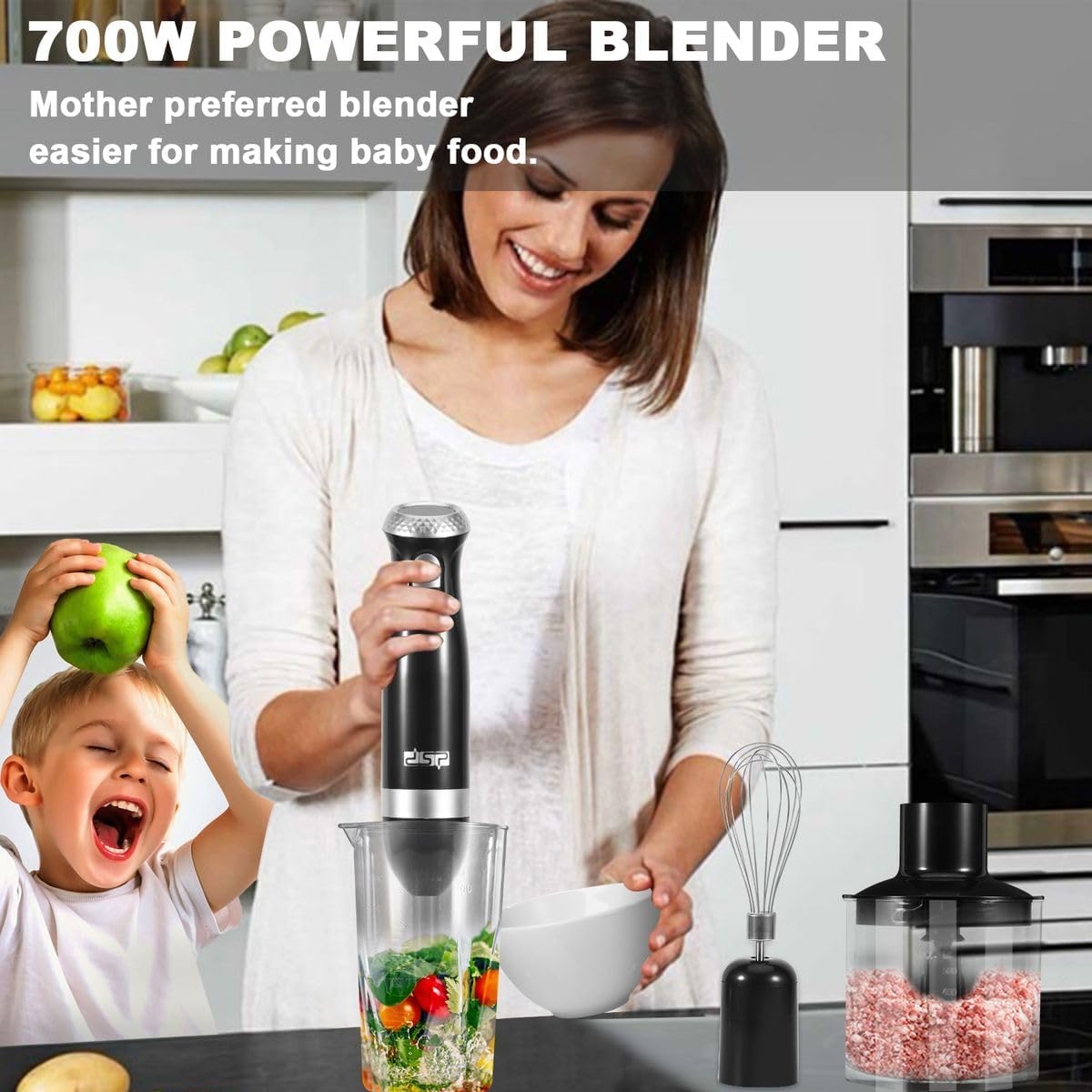 DSP 4-in-1 Stick Blender 700W Hand Blender Set with Chopper Egg Whisk