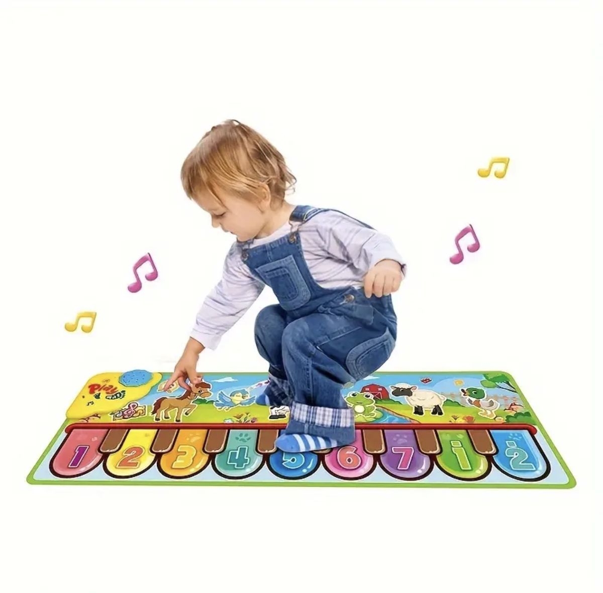 Our mat can play popular children’s songs, 7 animal sounds, and 3 instrument sounds. 10 keys and 6 modes keys allow toddlers to easily enjoy music sounds and learn 7 animals with words and images. Besides, the musical mat is large size enough for babies to step on, crawl, or even dance, entertaining them the whole day!