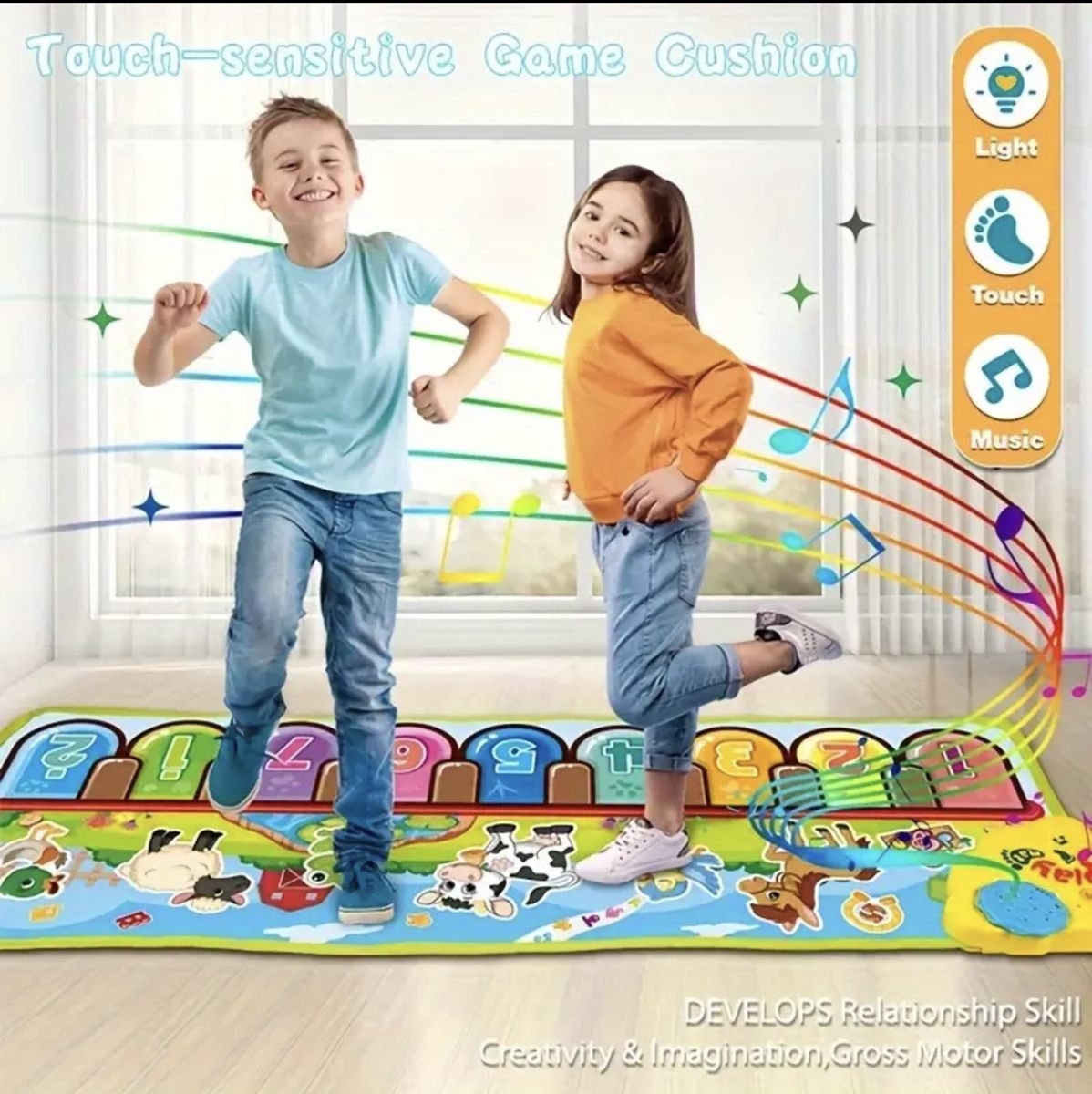 Early Educational Toys Modes at kids’ will, Demo, One key one note, Play, Play Back, and Record. The music mat sound is clear and the volume is adjustable. This floor piano mat is large enough for more than one child to touch, crawl, and dance. Great for improving their sensory ability, motor skills, language, and thinking ability, fun but educational.