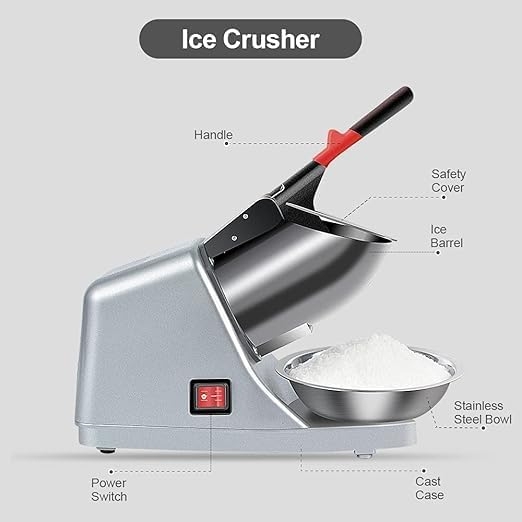 Our ice crusher / Gola maker has a unique Three Blades -blade design, a 300 W strong powerful, stainless steel & aluminum alloy body with a beautiful grey shell. Double-Blade Crushing: This commercial-grade ice crusher boasts a dual-blade design, making quick work of ice cubes to achieve a consistent and finely crushed texture. Keep your customers coming back for the perfect ice every time. The ice will not shoot out to the side or splash everywhere when you using it. Ensure the cleanliness of the desktop, Electric Ice Crusher Machine | Ice Snow Cone Maker | Ice Gola Maker | Ice Shaver Machine for Home Commercial Use | Autocut Sensor Machine | Ice Machine Use in Homes, Cafes, Hotels & Restaurants |