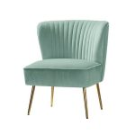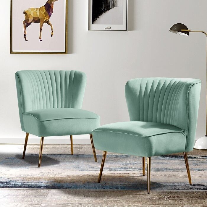 They’re built with a solid and engineered wood frame, and feature gold-finished flared metal legs for a retro look. These lounge chairs have an armless silhouette with a pared-down wingback that’s wrapped in velvet for some luxe appeal.