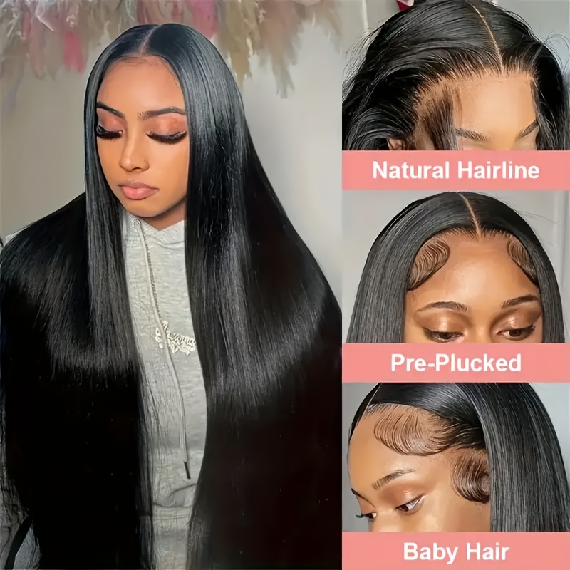 Eulisi 360 Full Lace Straight Frontal Wig – 150% Density HD Lace Human Hair Wig, Natural Black Color, Elegant Style for Women, Perfect for Everyday or Special Occasions, Versatile Hairpiece | Sleek Bun Style | Realistic Hair Texture, Lace Front Wig