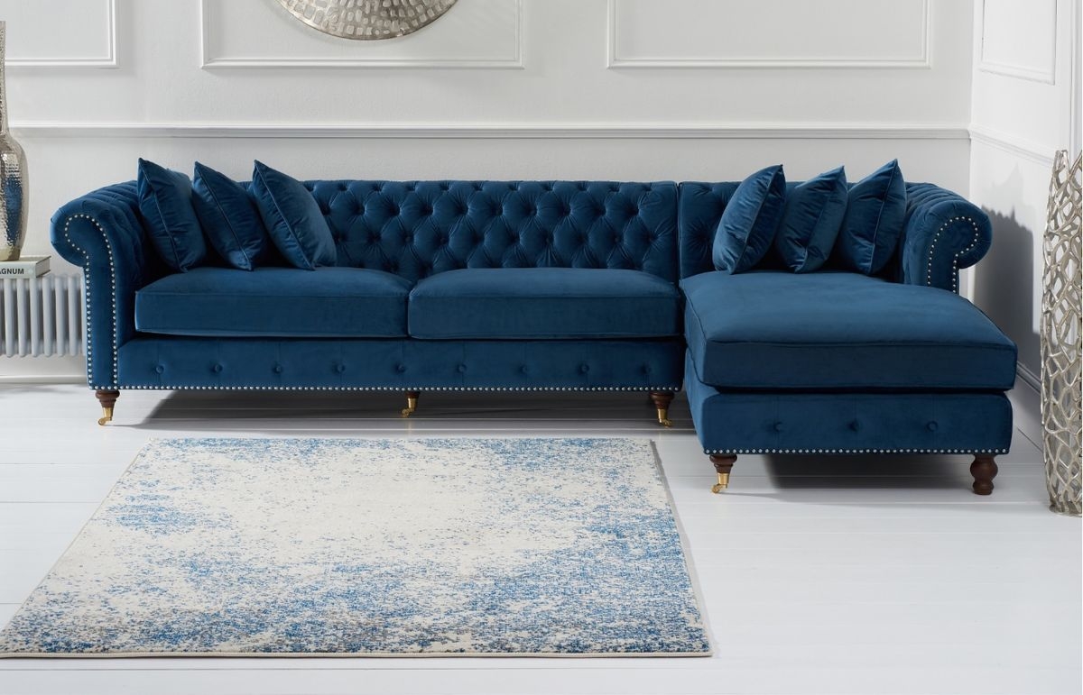 Chic and practical, the Flora Velvet Left Facing Chesterfield Chaise Sofa brings comfort and style to any interior.