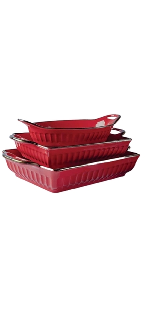 – The set consists of 1 Large bakeware, 1 Medium bakeware ,1 Small bakeware