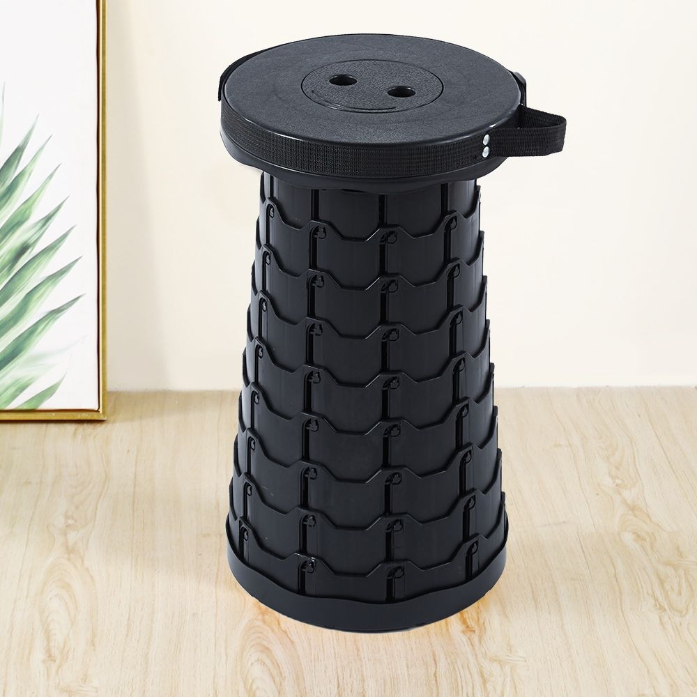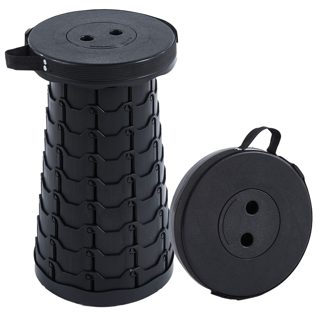 Folding Stool Portable Camping Chair Outdoor Seat Retractable Telescopic – Black