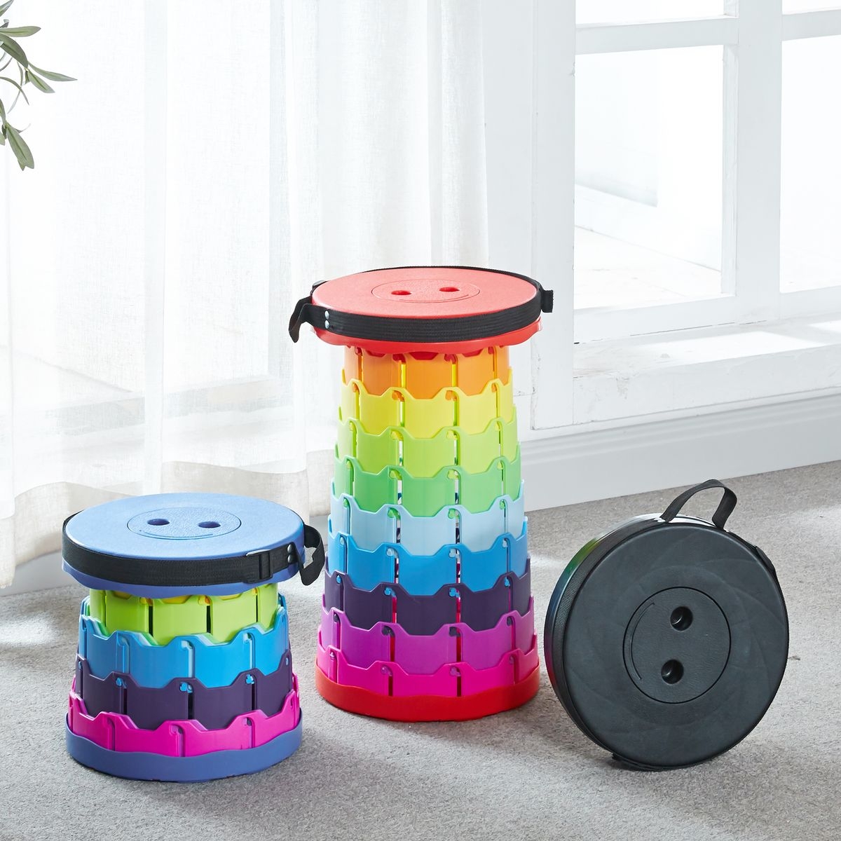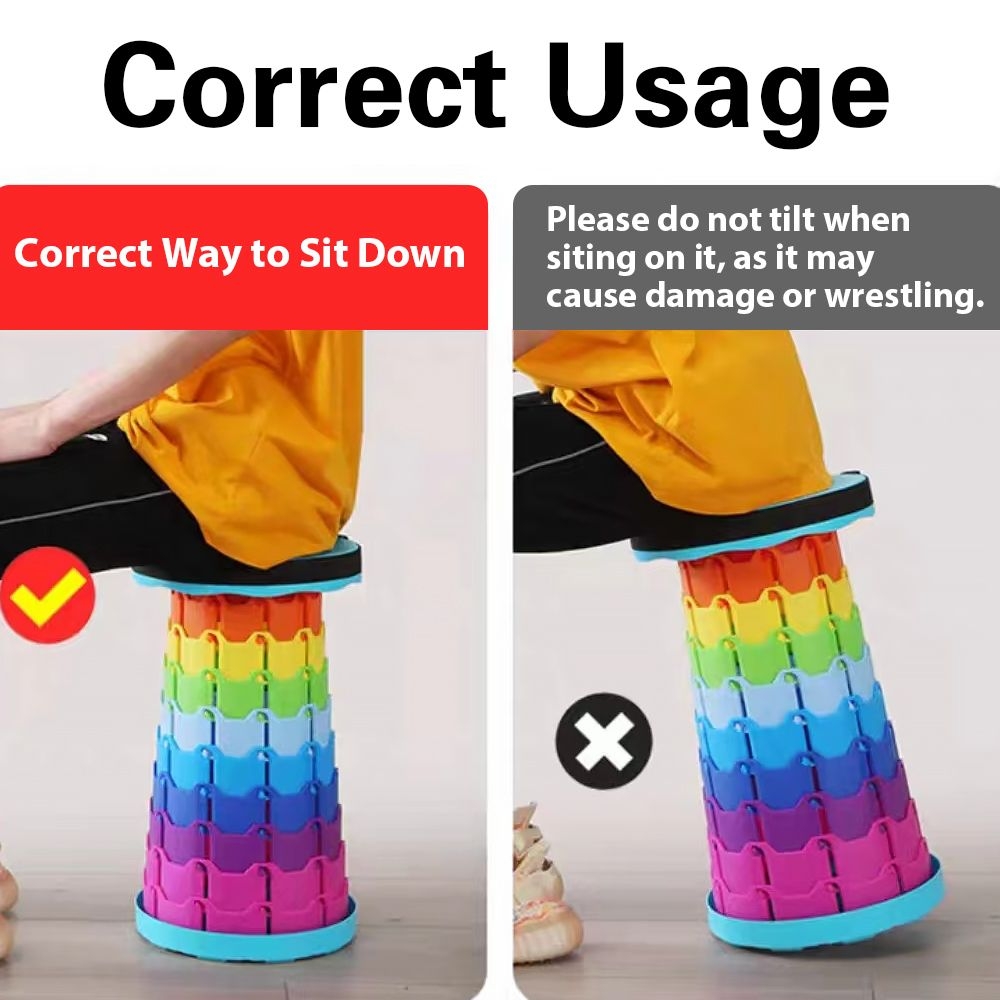 • Easy to Open & Use: Designed in fish scale and buckle, our retractable stool can stretch and retract smoothly and easily. You can open and close the stool in just seconds. The top and bottom of the collapsible stool are designed in smile face, you just need to hold the two holes, stretch and turn them clockwise/counterclockwise, and you can easily open and close them.
