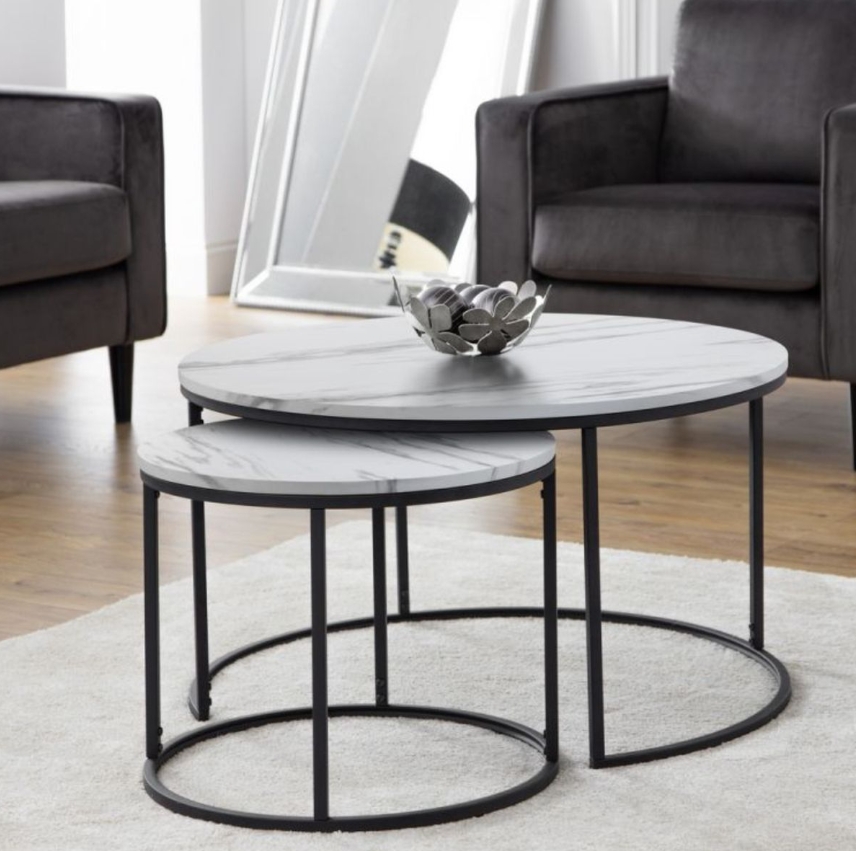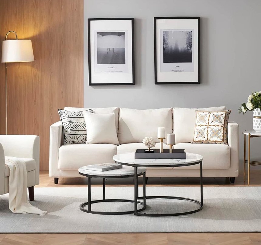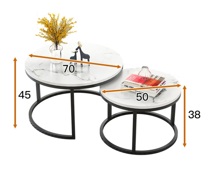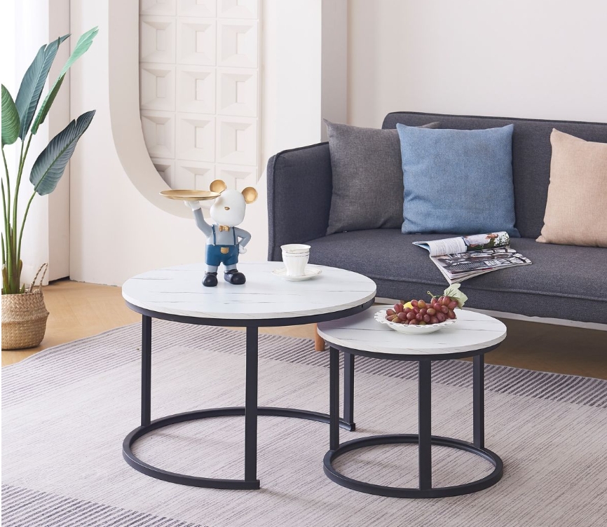 The semi-circular steel frame and the round tabletop design make the nesting tables more beautiful. Our nesting coffee table set is elegant and minimalist, bringing charm to your living room and giving your friends a good impression on your home.
