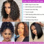 Golden Perfect Brazilian Hair13x4 Water Curly Glueless Full Frontal Bob Wig – 14′