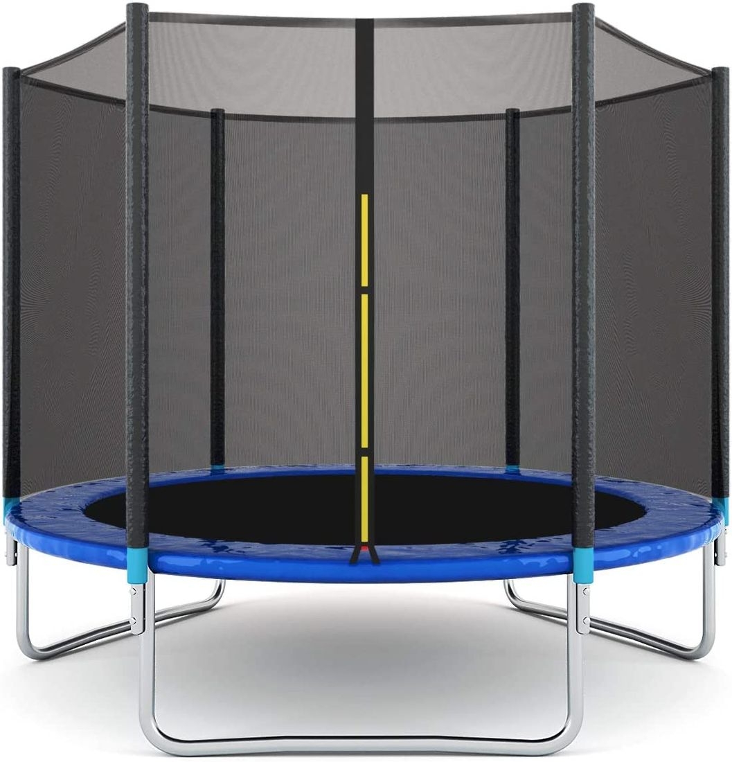 – Safety enclosure net is closely and tightly connected to galvanized steel poles with foam sleeves. There is no gaping between the enclosure net and jumping mat so you are safe while you are jumping on it.
