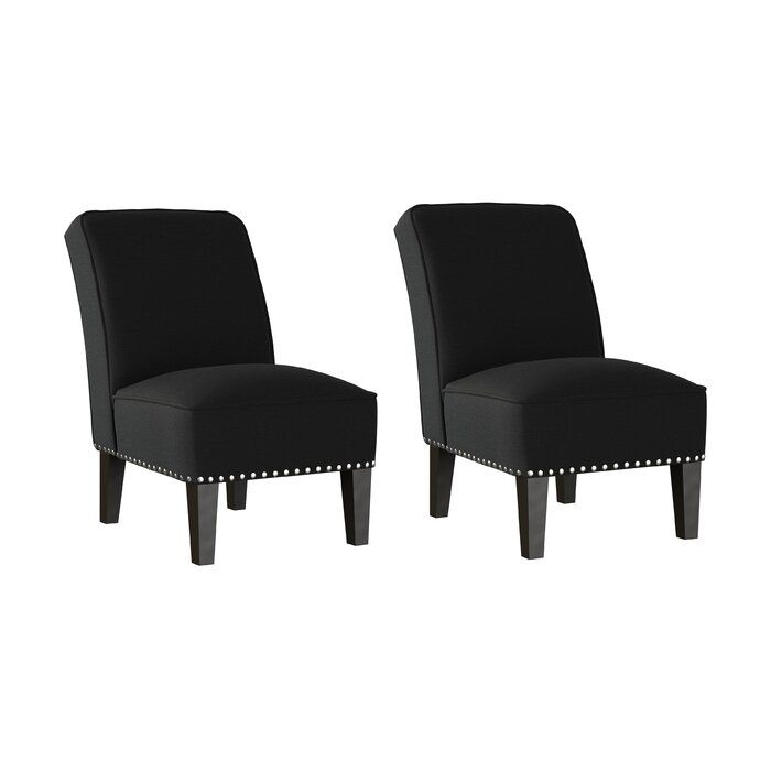 – Metallic nail head trim tops off each chair’s contemporary look.