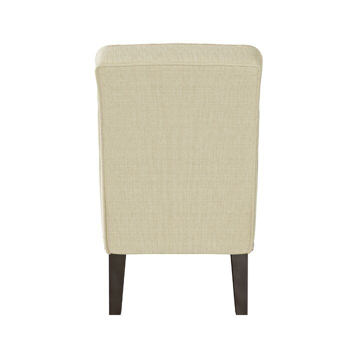 This chair is wrapped in 100% polyester upholstery and filled with foam and sinuous springs for a cushioned seat as you eat dinner at your dining table or enjoy coffee in your parlor.