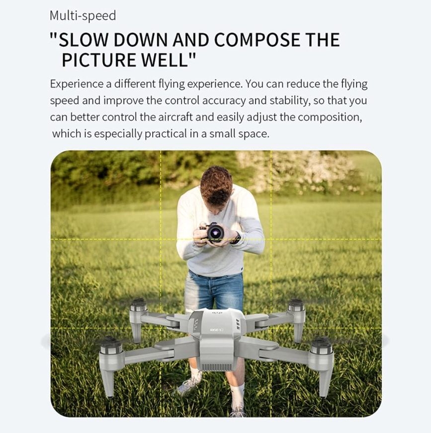 Follow me way. the drone will automatically follow and capture you wherever you move. By keeping you in the frame constantly, it is easier to get complex shots, provides hands-free flight and selfie. 6-axis gyro that can have a more stable flight and be easy to control.