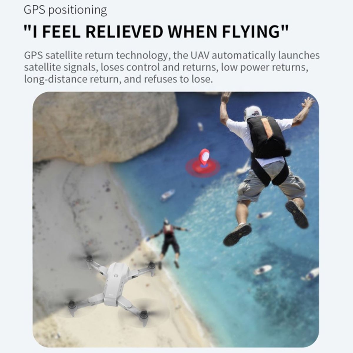 Flight assisted by GPS. Provides you with accurate positioning details for your drone. The drone will automatically return home precisely when its battery is low or the signal is weak when flying out of range, never worry about losing the drone. Optical flow positioning – fixed point height and can shoot more easily and firmly inside.