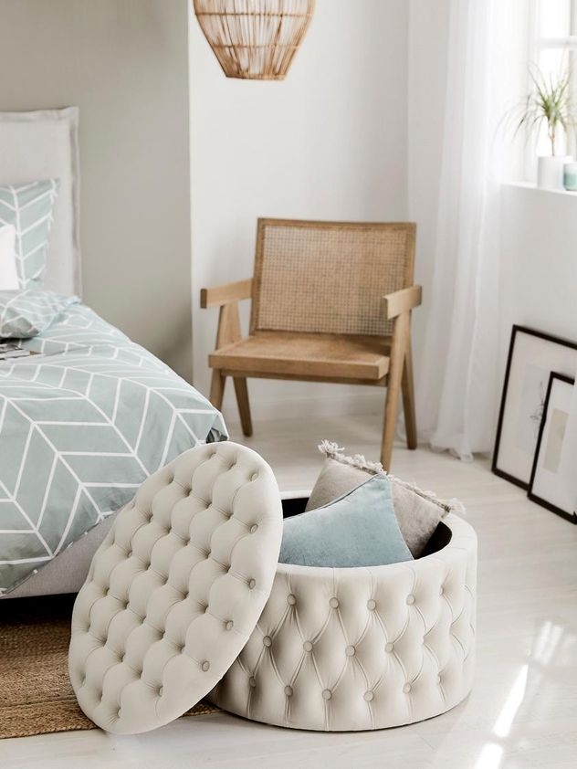 1x Liane Round Deep Button Ottoman w/ Storage Box