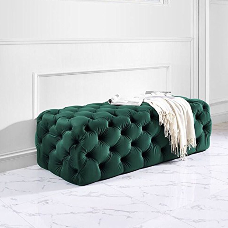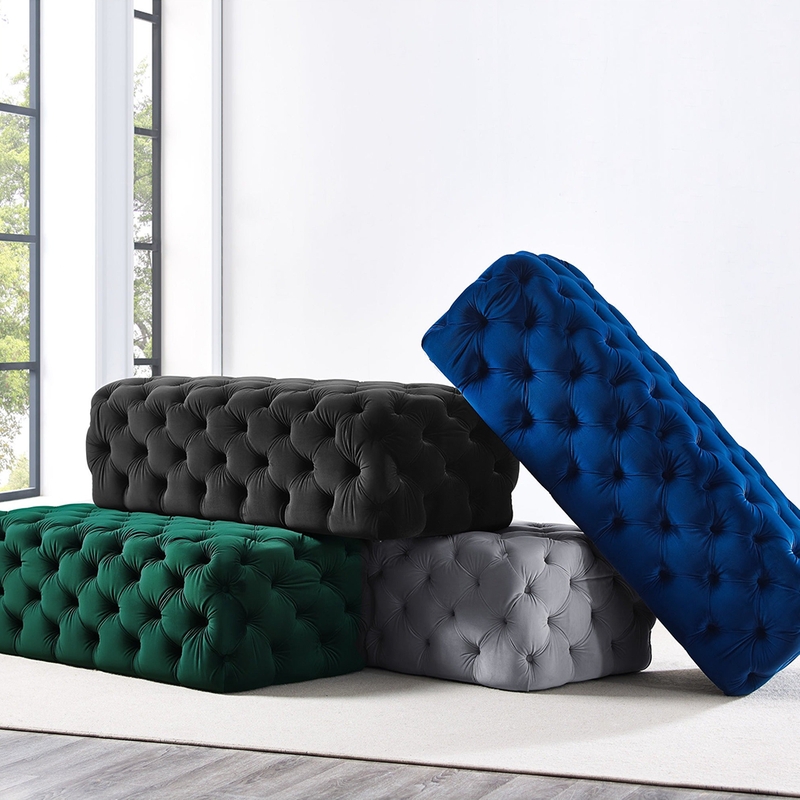 Diamond-tufted: On the outside, this ottoman is covered in your choice of colour in velvet. Allover diamond tufting brings exceptional comfort and makes this peace a divinely beautiful part of your home interior