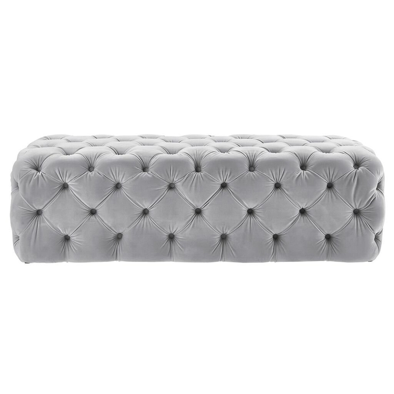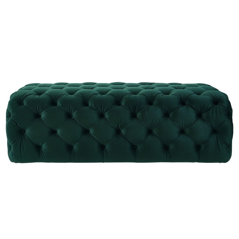 Create extra seating in your living room or hallway with this jumbo ottoman. Generously padded and carefully tufted, the ottoman is soft and comfortable for sitting or resting your feet. The rich, velvet upholstery adds a luxurious feeling to your traditional or modern decor.