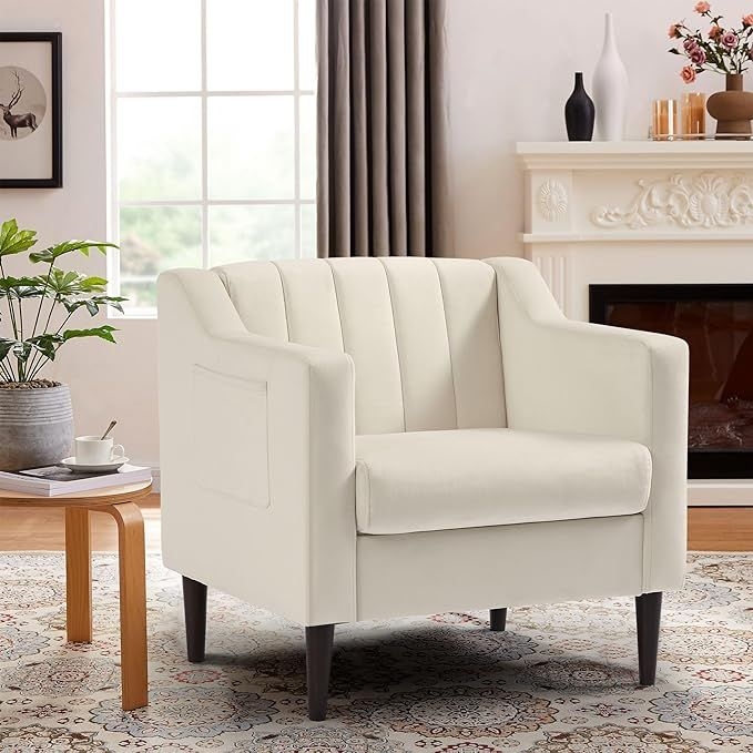 Elegant and Versatile Armchair: Luxuriously upholstered in smooth velvet with a classic channel tufted back, this chair boasts tapered dark brown solid wood legs for a modern touch. The slope armrest not only adds to its sophisticated style but also includes a convenient side pocket, blending functionality with aesthetics