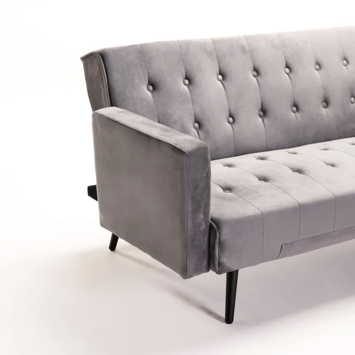 Upgrade your living space with the Mac Velvet Sleeper Couch, a perfect blend of style and functionality. This piece features luxurious button-tufted velvet upholstery that adds an elegant touch to any room. Its versatile design allows it to convert easily from a chic couch to a comfortable bed, making it ideal for hosting overnight guests. Available in a variety of sophisticated colours, including teal with gold or black legs, and dark grey with gold or black legs, it complements any decor. The sturdy construction ensures durability, making it a practical and stylish addition to your home