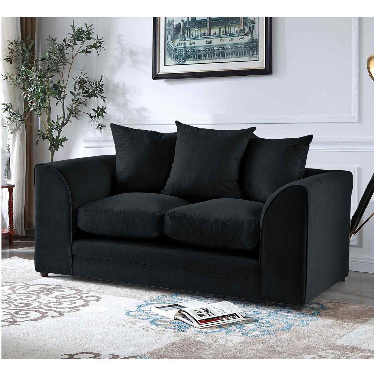 1 x Mindy Black Velvet 2 Seater Sofa