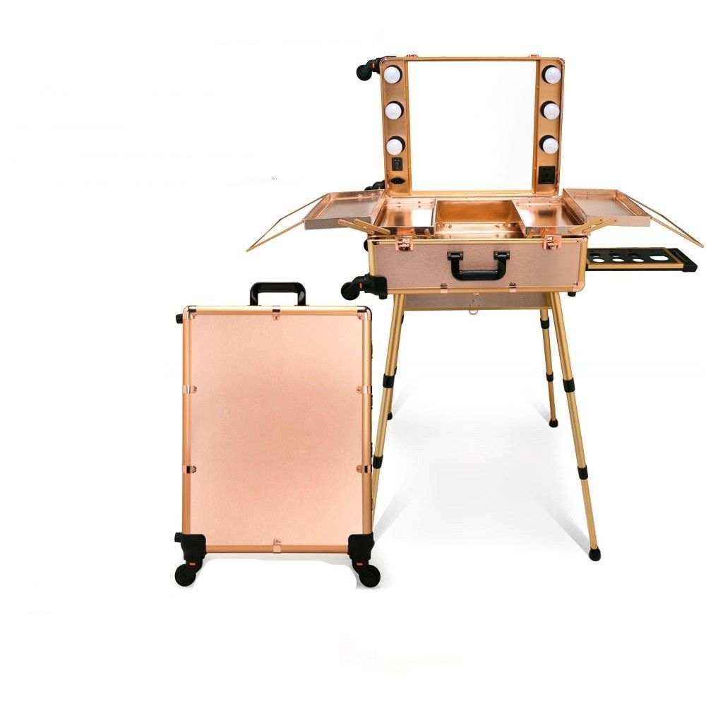 -Premium Quality and Look: Sturdy aluminium frame, reinforced corners, MDF exterior and PU interior make this makeup case last for years; this makeup case will stand out wherever you place it for its chic and fabulous design; widely used in fashion runway as temporary makeup station and beauty travel luggage