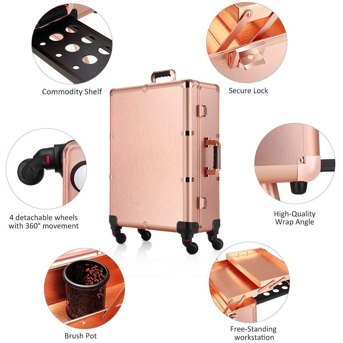 -Premium Quality and Look: Sturdy aluminium frame, reinforced corners, MDF exterior and PU interior make this makeup case last for years; this makeup case will stand out wherever you place it for its chic and fabulous design; widely used in fashion runway as temporary makeup station and beauty travel luggage