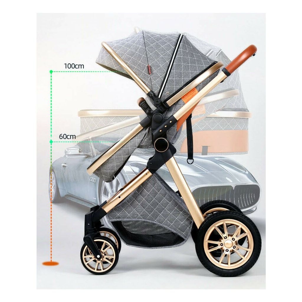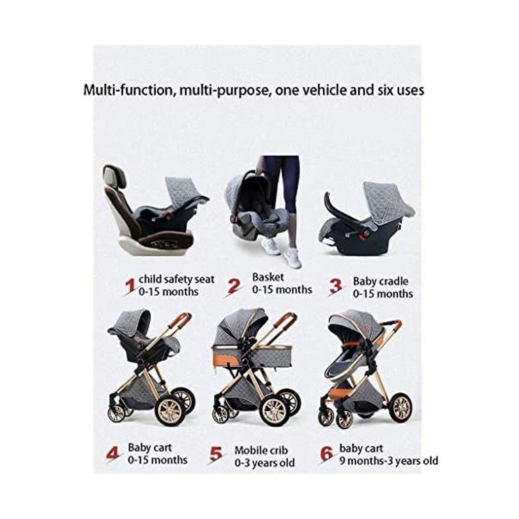 Multi-Functional 3 in 1 High Pram & Light Folding Baby Stroller – Grey