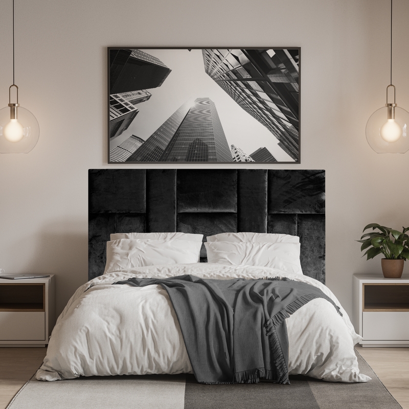 Multi-Panel Styled Headboard – Velvet (Black) – Single