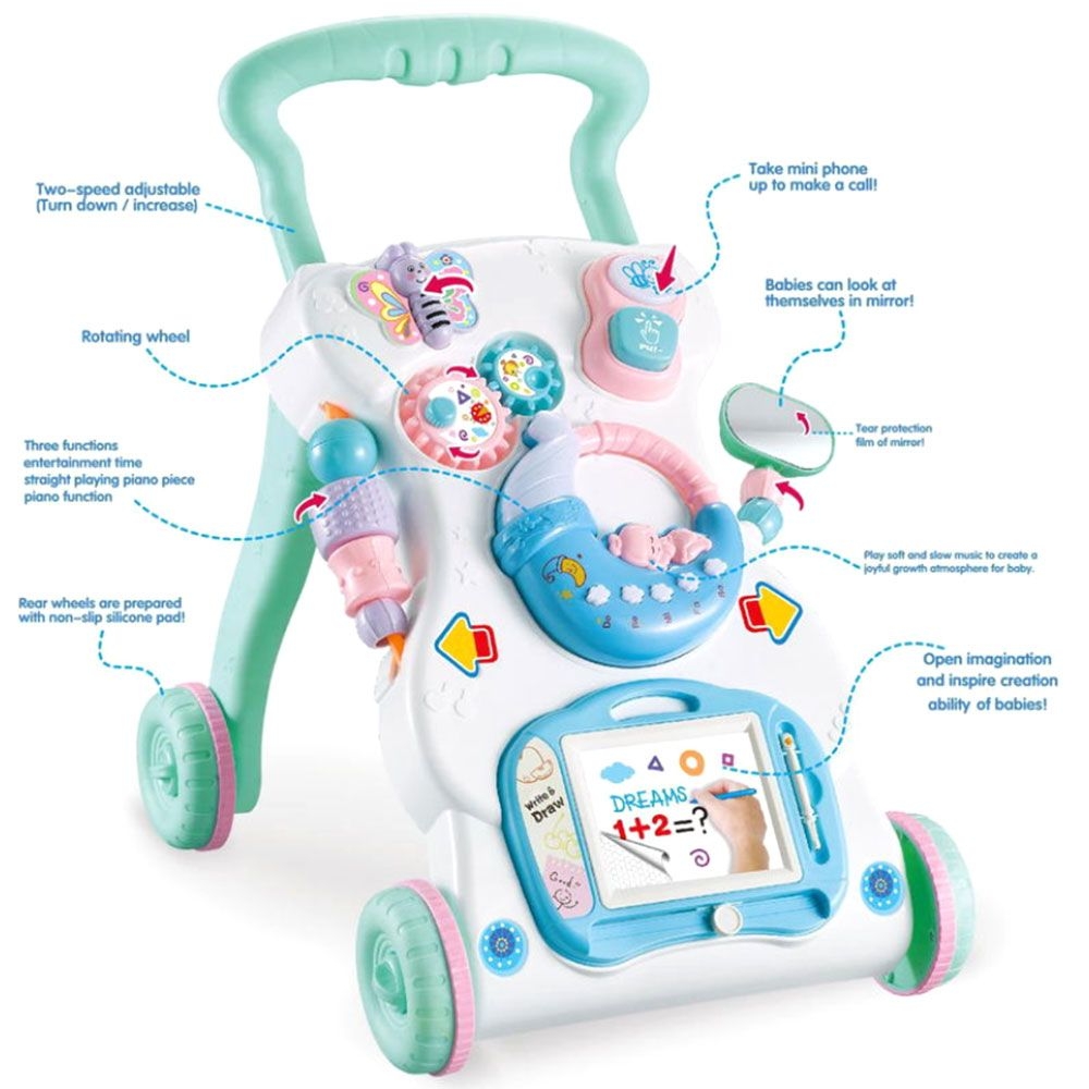 This walker is able to exercise your baby’s hearing, the sense of touch, child’s cognition of different shapes, and learn to walk scientifically.