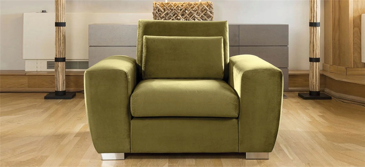 Elevate your living space with the Navada 1 Seater armchair sofa ,The first thing that you will notice is flat sleek lines of the seat and back cushions giving a super neat and contemporary look. Covered In Velvet Fabric .