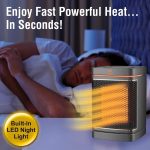 I am impressed by the output of this little plug-in wall heater. I work from home a lot from a small little home office downstairs, and it can get cold in there in the non-summer months when I don’t have the whole house furnace blasting. I had been using a radiant oil heater that takes up quite a bit of room on the floor. This compact heater is a great replacement. This heater is very compact, has an adjustable plug to plug in securely into a 3-prong outlet, and heats up a small room pretty quickly. It is a little noisy when running compared to my radiant heater, but that’s a tradeoff to not having to turn on the furnace for the entire house when I’m hiding in my home office for most of the day. You can adjust the temperature as well as set a timer for up to 12 hours which is very helpful.