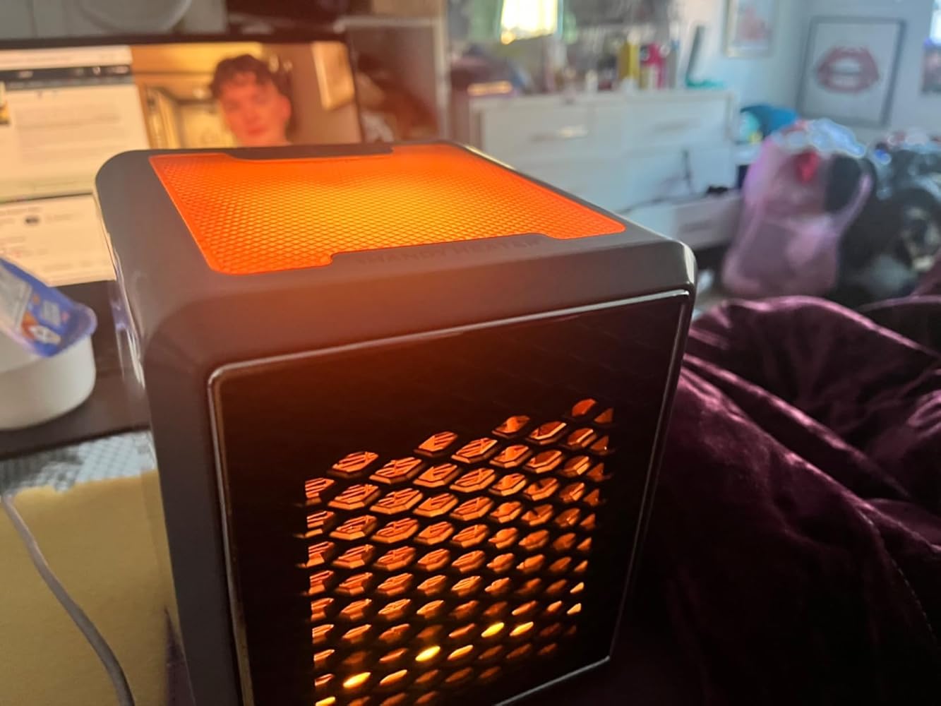 Honestly this is my favorite heater. Here’s why; because I’ve bought three of these within the past couple of years as gifts and for myself;Firstly, it’s super cute in appearance. It’s small, not heavy, and you can change the colors from orange, blue, yellow, purple, and cyan, to even plain white. It casts a cozy glow and I like it. I honestly do wish they had pink, the purple is nice but a girl wants pink!They last incredibly long. I actually bought my first one over a year ago at T.J. Max and I had no issues with it, I still use it and it works very well! I bought a new one because my roommate was moving out and she liked my heater. I let her take it so I purchased a new one.The noise level isn’t too bad actually. I end up using it like a sound machine, it’s like a fan mixed with like light white noise and honestly I fall asleep sooo fast haha.It will stay on unless you turn it off, so no auto shut off. There is a little black nub on the bottom and that has to be pressed down so it’ll turn on. So if you have your heater plugged in but it’s not on a surface to keep that black nub down; you will not be able to turn it on and use the heat.