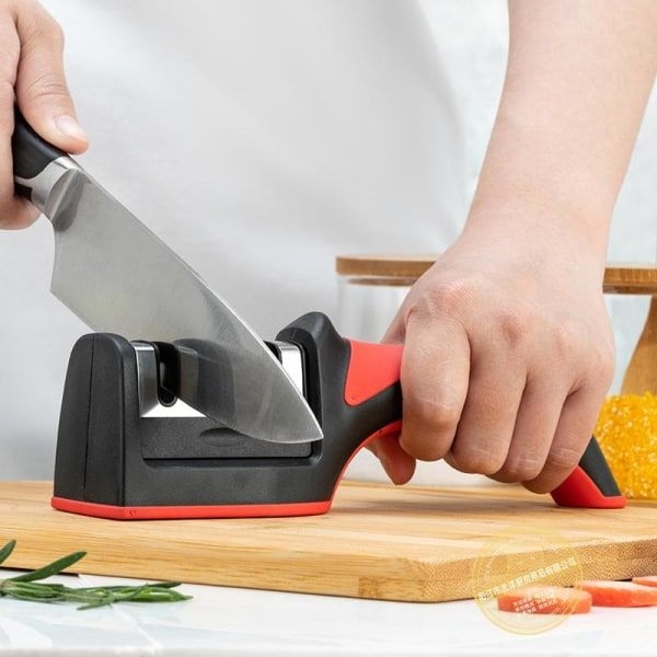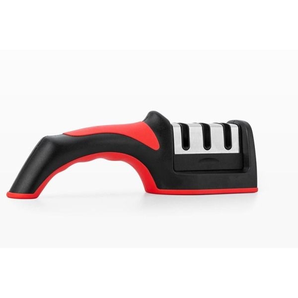 Optic Fast Knife Sharpener-red is easy to use, quickly sharpening your dull kitchen knives. Ergonomic soft handle design, non-slip base, supper 3 stages design, help you to process your cooking safer and quicker.