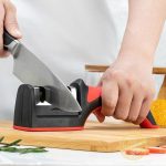 – Maintenance – Don’t leave the Knife Sharpener into the water for a long time, clean it by water then dry it by a soft cloth to clean the metal part and ceramic rod, not suitable for dishwasher