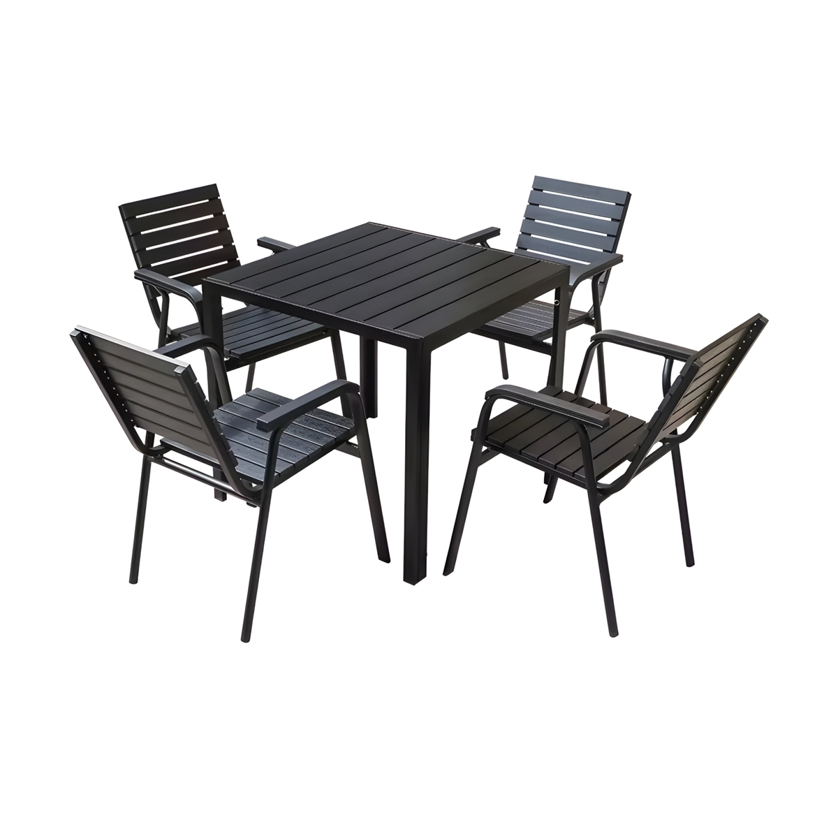 Elevate your outdoor dining experience with the Outdoor Dining Square Plastic Wood Table with 4 Armchairs. This elegant and functional set is designed to provide a comfortable and stylish setting for al fresco meals, gatherings, and relaxation.