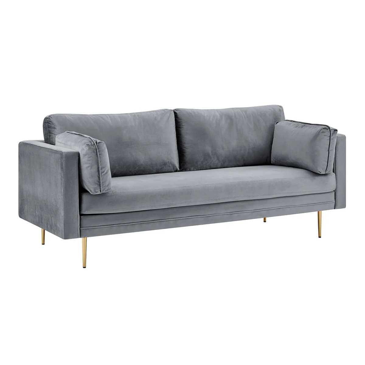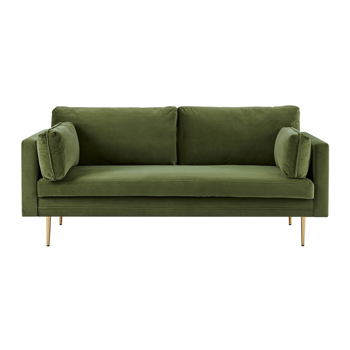 Add a pop of rich colour to your living space with our Paige velvet sofa. The stylish profile accented by neatly tailored cushion piping and tapered gold colour legs brings contemporary look to your home.