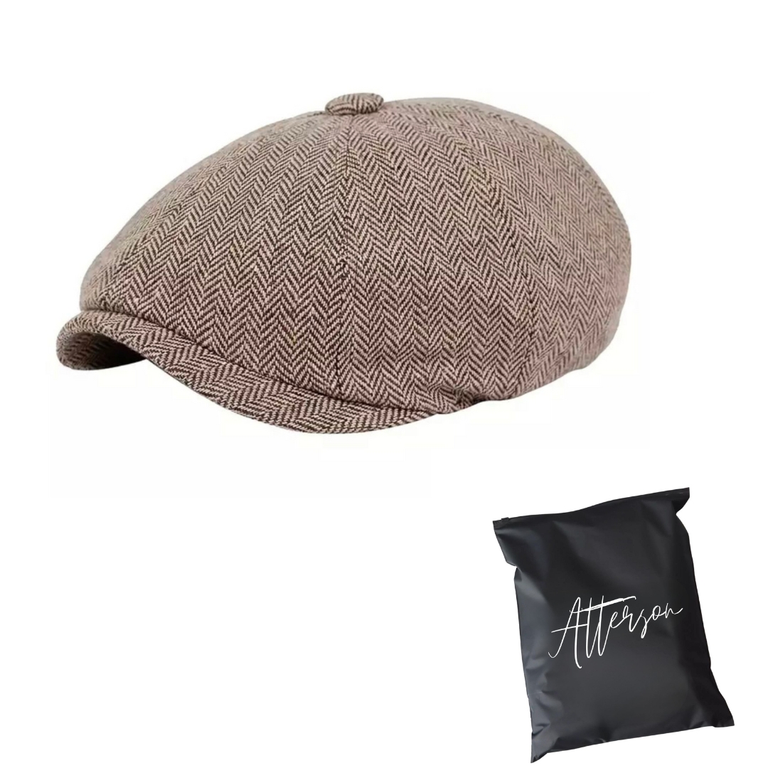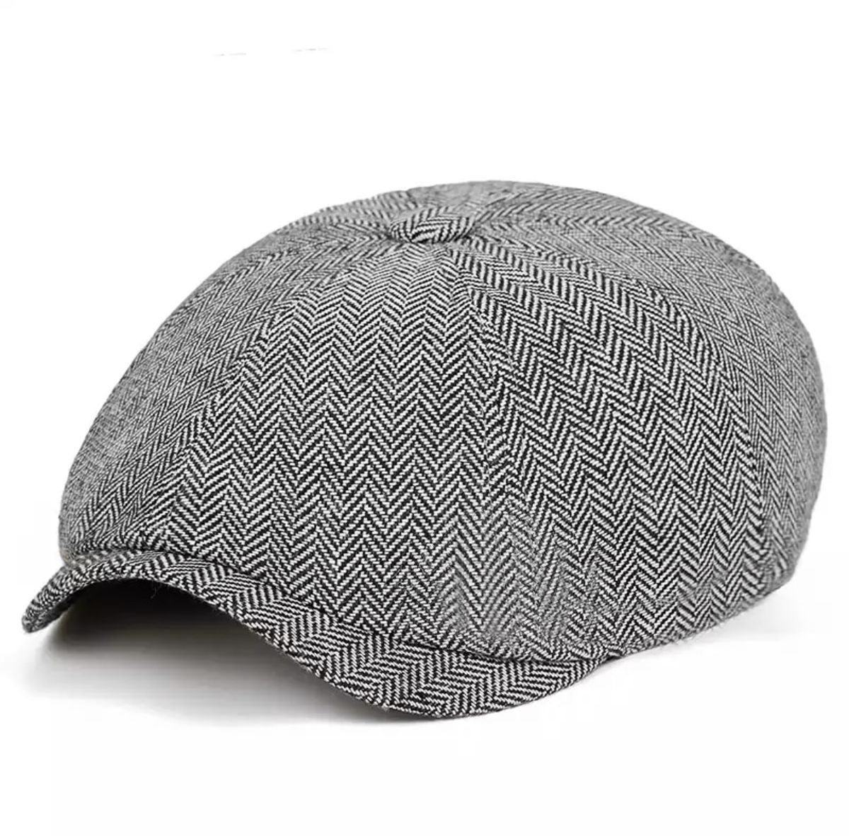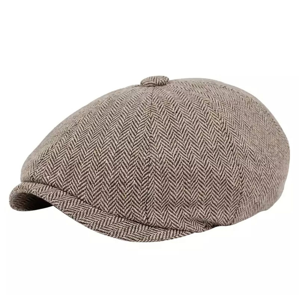 Classic Newsboy Cap – Traditional newsboy cap with eight individually stitched panels and a buttoned top for a classic men’s newsboy flair.