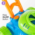 Helping “mow” the lawn is so much fun with this bubble mower! This push-along toy looks and sounds like real a lawnmower. As toddlers roll it along, the pretend motor spins while lots of bubbles fly all around.