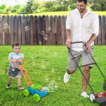 My son loves his lawn mower, the machine sound is very realistic yet not too noisy. I wish there was a lid for the bubble solution, so it doesn’t spill as he plays, but he still enjoys his toy