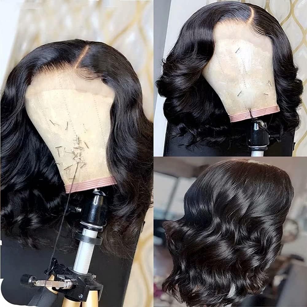 10 reviews for QUINLUX WIGS Body Wave Short Bob Human Hair Wig 13×6 HD Transparent Lace Front Human Hair Wig Brazilian Hair Natural Color 150% Density Short Wigs Ocean Wave Pre Plucked With Baby Hair For Women16inch